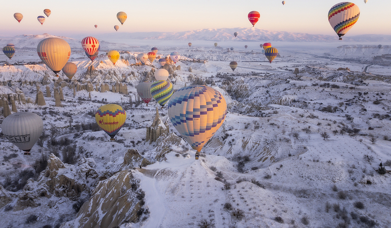 Our Cappadocia hot-air balloon experiences are priced per person and vary by season and flight category. All flights include hotel pick-up and drop-off, a light breakfast before the flight, and a celebratory certificate after landing. We offer three flight categories:
