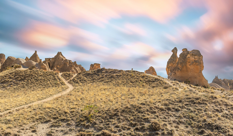 This full-day Cappadocia tour will introduce you to the amazing attractions of Cappadocia with a focus on its foremost highlight: the dreamlike landscape. By making several scenic stops as well as comprehensive visits to the most interesting sections of the topography, you will gain an insight into not only the geological processes that fabricated the wondrous surroundings but also the troglodytic life that persisted throughout the region.